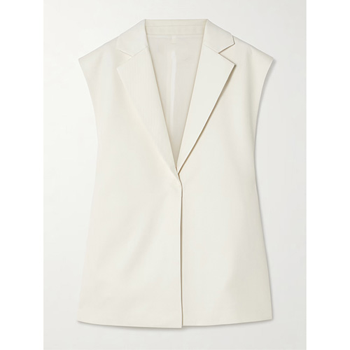 🌸 Mød din nye garderobehelt: The Cream Sleeveless Blazer Vest & Wide-Leg Pants Set