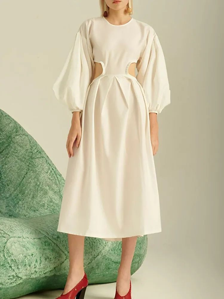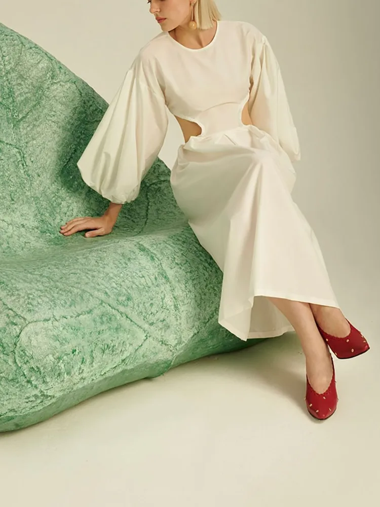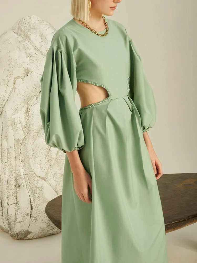 Lady Maxi langærmet elegant linned kjole Modefunktioner