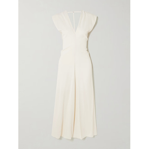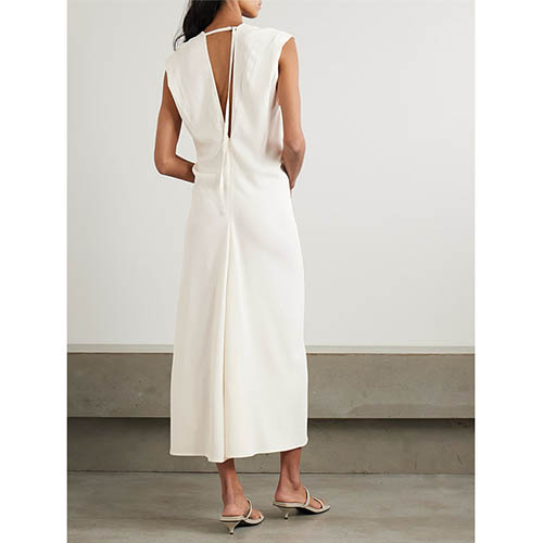Hot Tags: Elfenbens ærmeløs dyb V midikjole